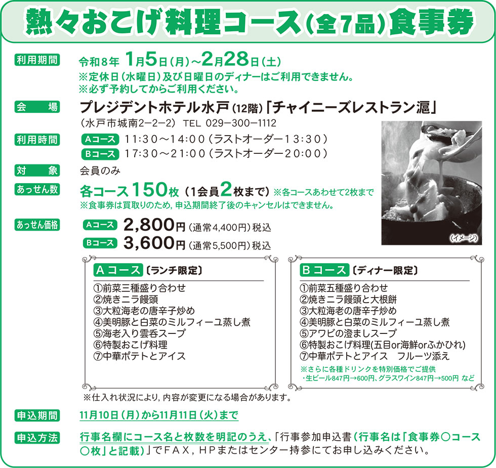 申し込み期間 | 11月10日 (月) ~ 11月11日 (火) |