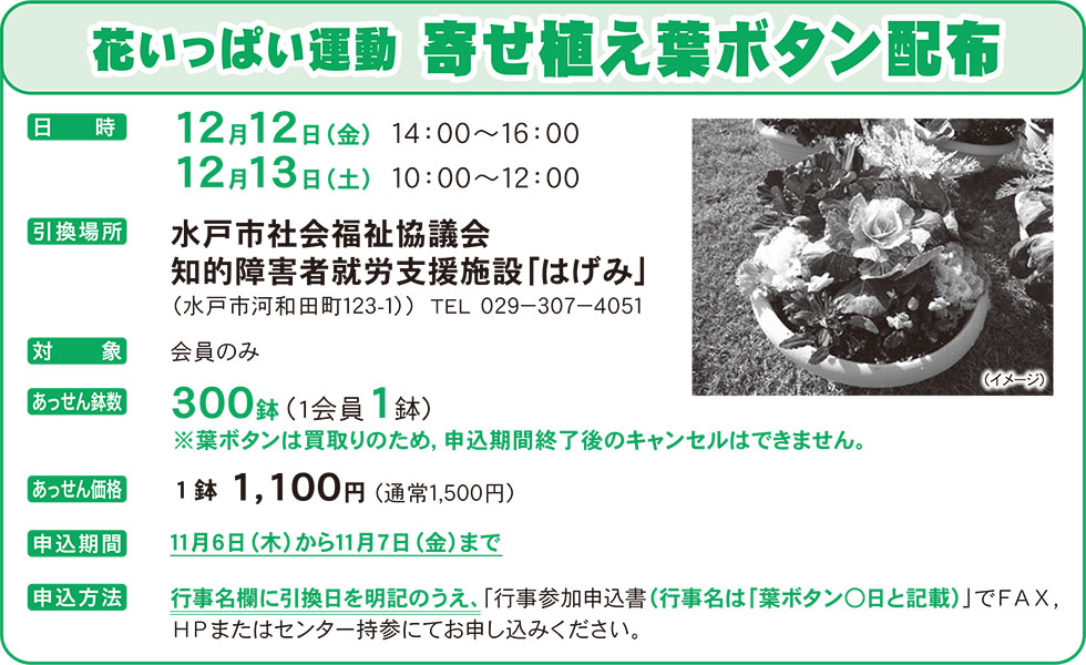 申し込み方法 | 「行事参加申込書(行事名は「スワッグ教室」と記載)」でFAX、HPまたはセンター持参にてお申し込みください。 |