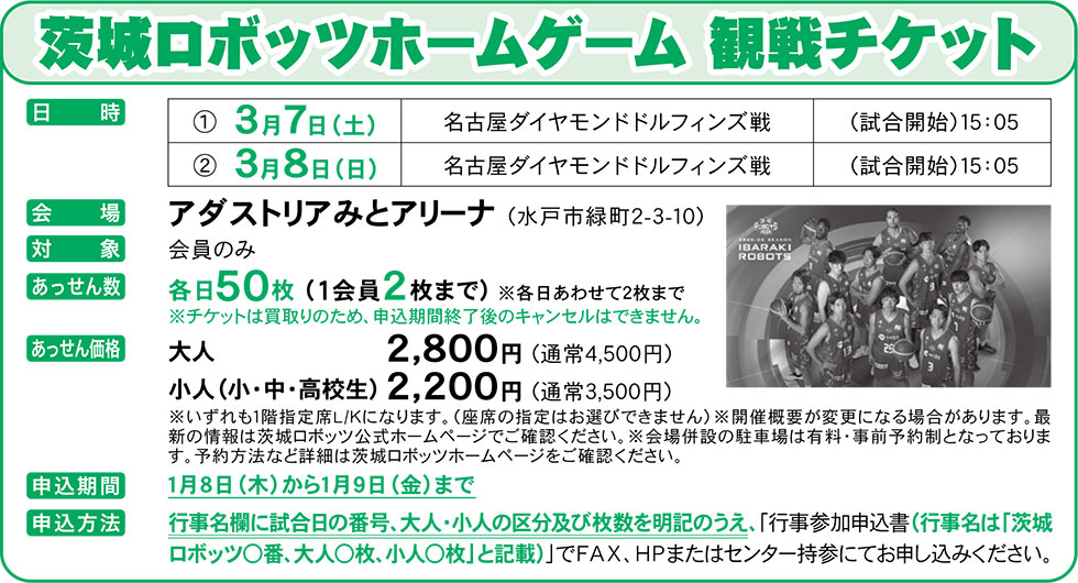 | 申し込み期間 | 1月14日 (水) ~ 1月15日 (木) |